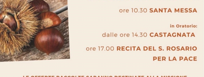 Domenica 26 Ottobre in Oratorio torna la tradizionale CASTAGNATA e alle ore 17.00 reciteremo il Santo Rosario per la Pace in tutto il mondo, come ci invita a fare quotidianamente papa Leone XIV.