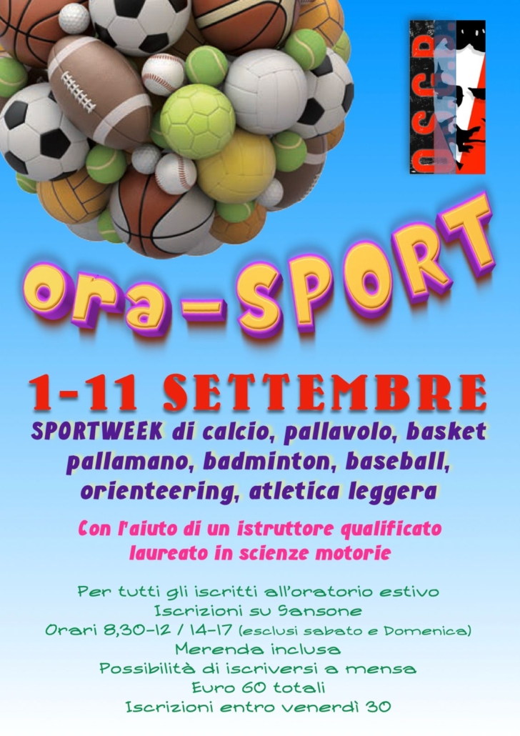 Le iscrizioni per i giorni di Settembre in Oratorio, prima che cominci la scuola, sono aperte su SANSONE: occorre iscriversi entro Venerdì 29 Agosto 2025.